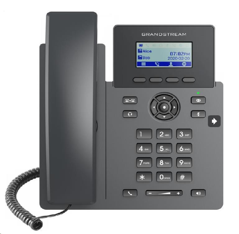 Akční nabídky na váš e-mailSoučástí nové Grandstream GRP řady IP telefonů je i GRP2601. Jde o základní dvoulinkový model navržený pro hromadné nasazení a snadný management. Vyznačuje se elegantním designem a sadou funkcí nové generace, včetně 5 cestné audiokonference pro maximální produktivitu, podporou EHS pro náhlavní soupravy Plantronics, Jabra a Sennheiser , vícejazyčnou lokalizaci včetně české a slovenské.