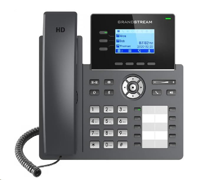 Akční nabídky na váš e-mailSoučástí nové Grandstream GRP řady IP telefonů je i GRP2604P. Jde o základní třílinkový model navržený pro hromadné nasazení a snadný management. Vyznačuje se elegantním designem a sadou funkcí nové generace, včetně 5 cestné audiokonference pro maximální produktivitu, integrovaného PoE napájení, HD audio v reproduktoru i sluchátku umožňuje uživatelům komunikovat v maximální srozumitelnosti a kvalitě, 10 BLF tlačítek pro rychlé volby, podporou EHS pro náhlavní soupravy Plantronics, Jabra a Sennheiser , vícejazyčnou lokalizaci včetně české a slovenské.