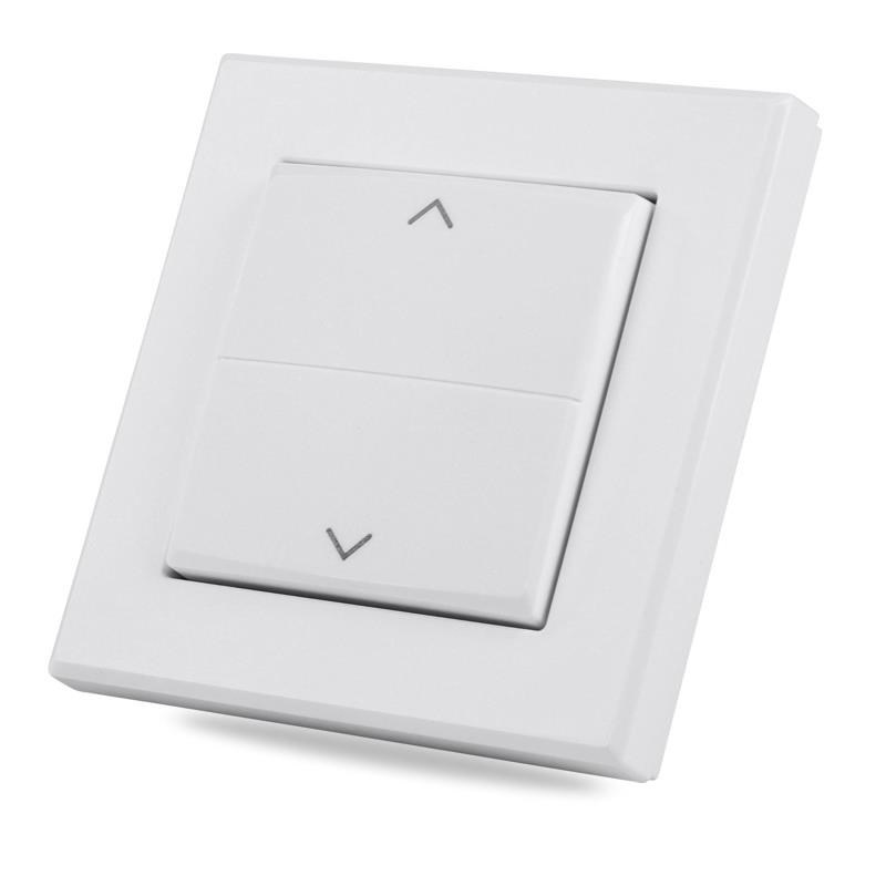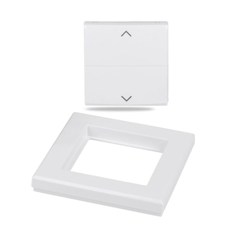 Kryt kolébkového vypínače se symboly šipek a rámečkem (HmIP-BRA) pro programovatelné bezdrátové akční členy (HmIP-BRC2, HmIP-BROLL, HmIP-BBL, HmIP-BSM, HmIP-BDT) o velikosti 55 mm je součástí systému chytré domácnosti Homematic IP.