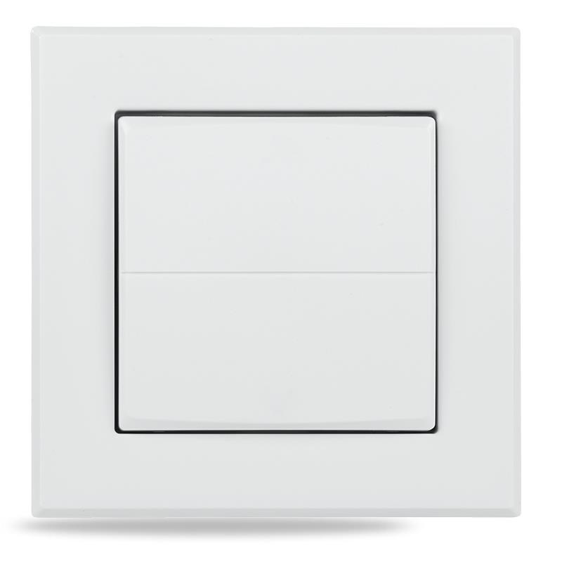 Kryt kolébkového vypínače s rámečkem (HmIP-BRU) pro programovatelné bezdrátové akční členy (HmIP-BRC2, HmIP-BROLL, HmIP-BBL, HmIP-BSM, HmIP-BDT) o velikosti 55 mm je součástí systému chytré domácnosti Homematic IP.