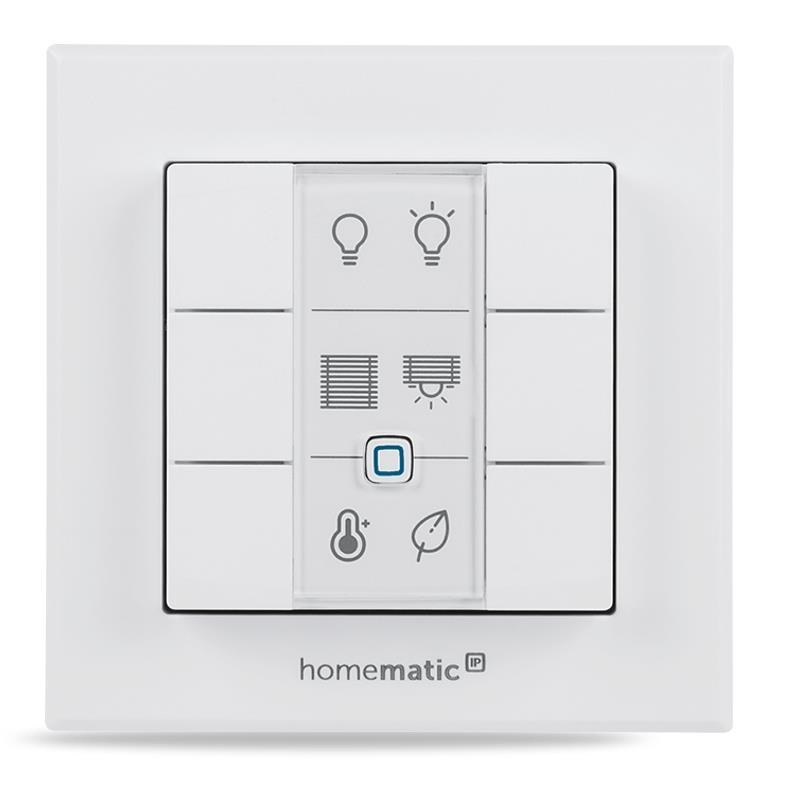 Programovatelný bezdrátový Nástěnný dálkový ovladač (HmIP-WRC6) je součástí systému chytré domácnosti Homematic IP.