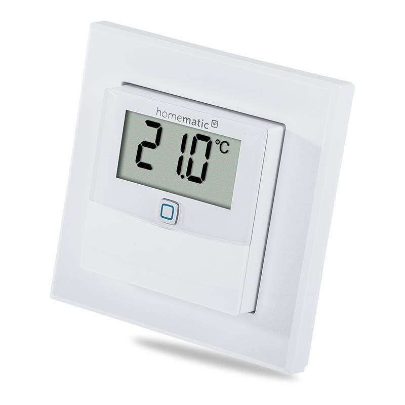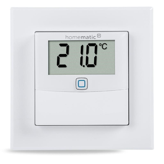 Bezdrátový nástěnný Senzor teploty a vlhkosti (HmIP-STHD) s LED displejem o velikosti 1,74" (4,4 cm) pro zobrazení aktuálních informací představuje inteligentní způsob pro regulaci vytápění a úsporu energií.