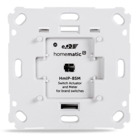 Programovatelný bezdrátový Spínací akční člen s měřením (HmIP-BSM-I) pro zápustnou montáž, napájený ze sítě 230 V, je součástí systému chytré domácnosti Homematic IP.