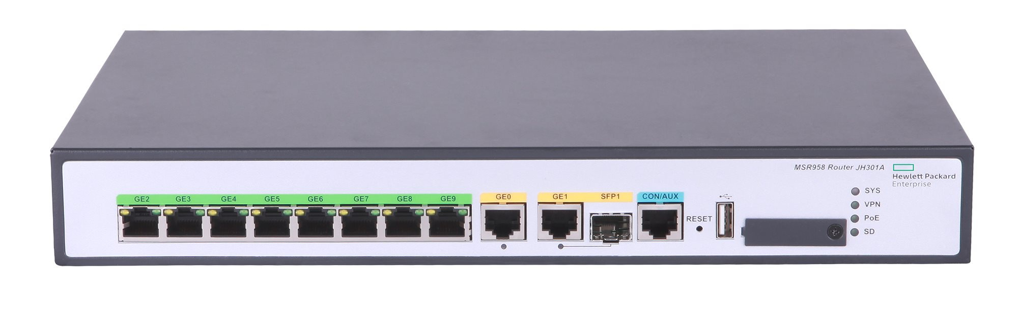 HPE FlexNetwork MSR958 1GbE and Combo 2GbE WAN 8GbE LAN PoE Router.