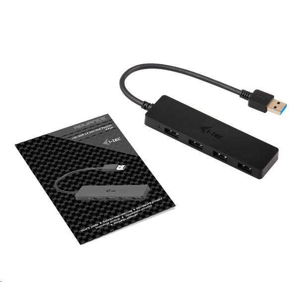 • i-tec USB 3.0 pasivní 4 portový HUB s vestavěným USB kabelem (20 cm)