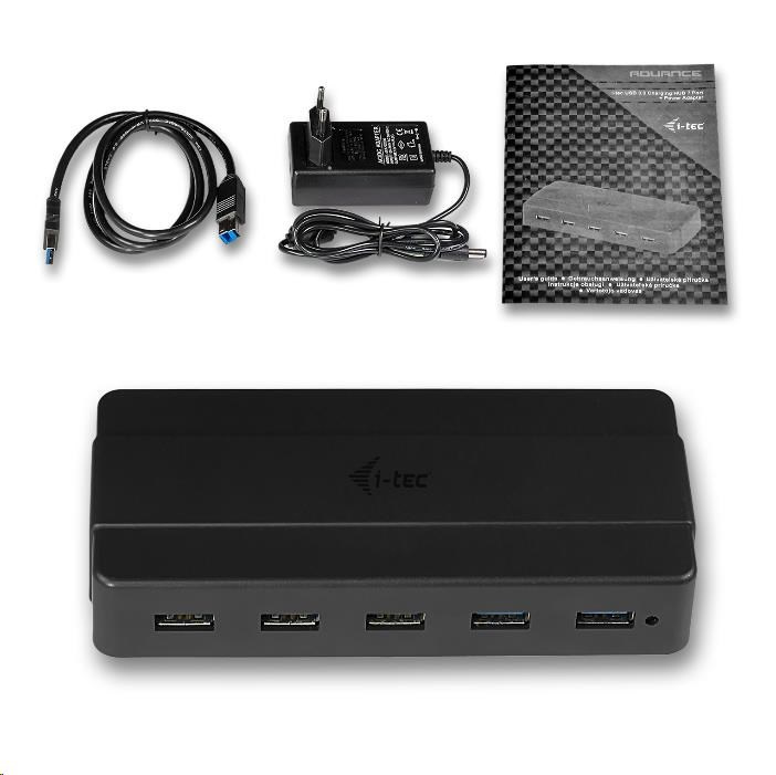 Tento Hub nabízí 7 USB 3.0 portů s funkcí Plug & Play a standardním USB nabíjením – HUB automaticky detekuje, jestli je připojeno zařízení pro USB nabíjení. 2 porty umístěné vedle LED podporují také nabíjení dle specifikace BC 1.2, např. pro iPad nebo Samsung tablet.