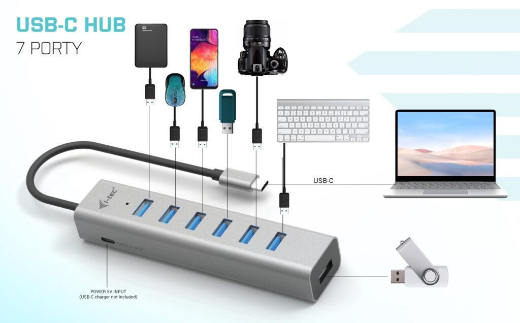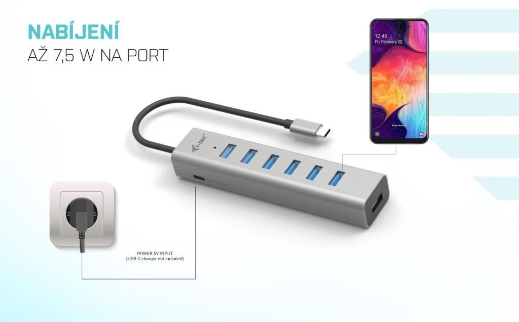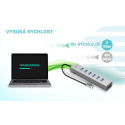 S tímto hubem získáte dalších 7 USB 3.0 portů (až 5 Gbps). Připojte si externí klávesnici a myš, přenášejte data nebo filmy z USB flash disku rychlostí až 5 Gbps nebo nabíjejte svá mobilní zařízení nabíjejte, až rychlostí 7.5W.
