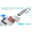 Hub nevyžaduje instalaci ovladačů, pouze jej pomocí USB-C kabelu připojíte a můžete jej ihned začít využívat. Hub má vestavěnou přepěťovou ochranu vašeho počítače pro případ zkratu na periferních zařízeních. Díky kompaktním rozměrům a nízké hmotnosti jej můžete mít v brašně stále sebou – kovový povrch ostatně chrání hub před poškozením a před poškrábáním.