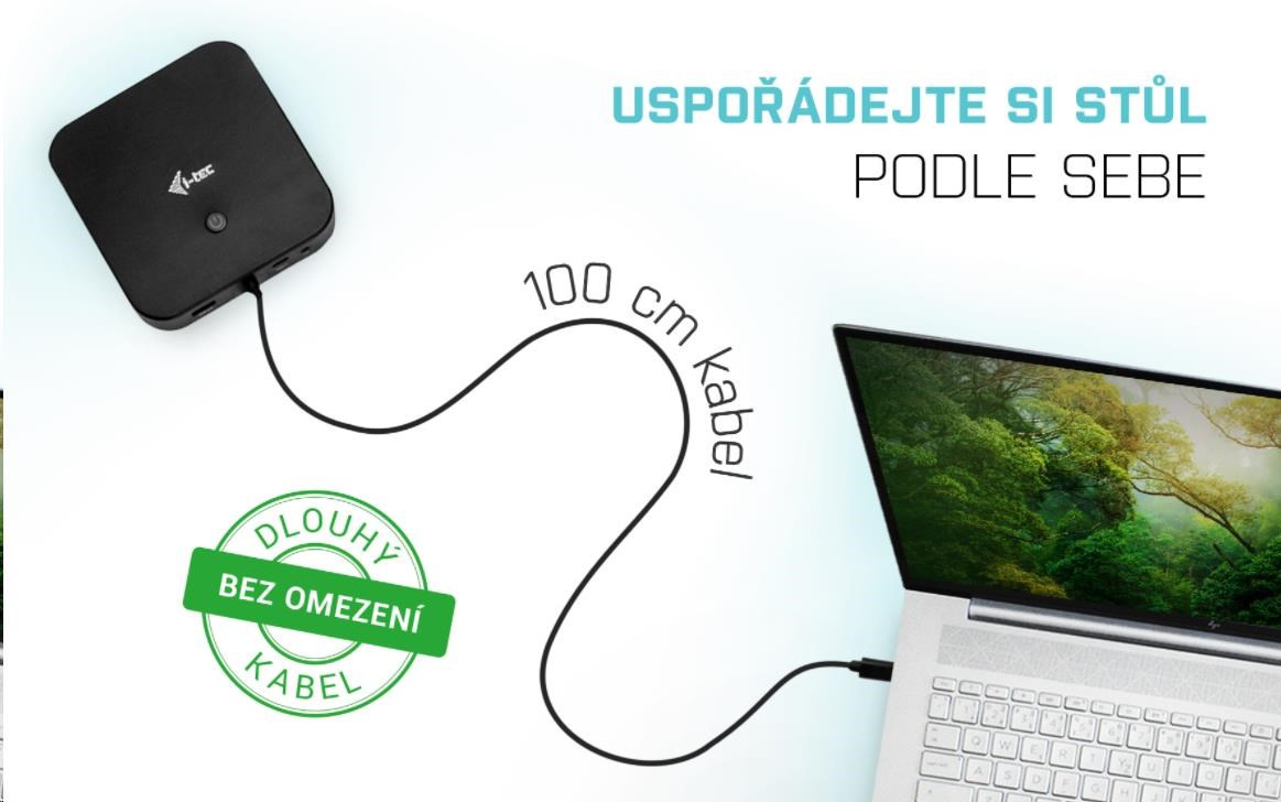 Vysoce kvalitní USB-C kabel v délce jednoho metru vám na stole zajistí dostatek místa a hlavně možnost si uspořádat pracovní prostředí podle vašich požadavků. Kratší kabely často omezují variabilitu použití, a v některých případech dokonce brání připojení veškerého potřebného příslušenství.