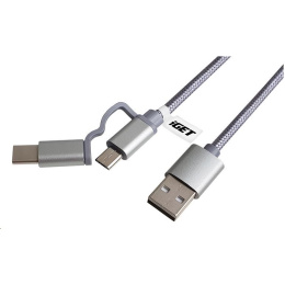 iGET G2V1 USB kabel 2v1, 1m, stříbrný, microUSB i USB-C, prodloužené koncovky