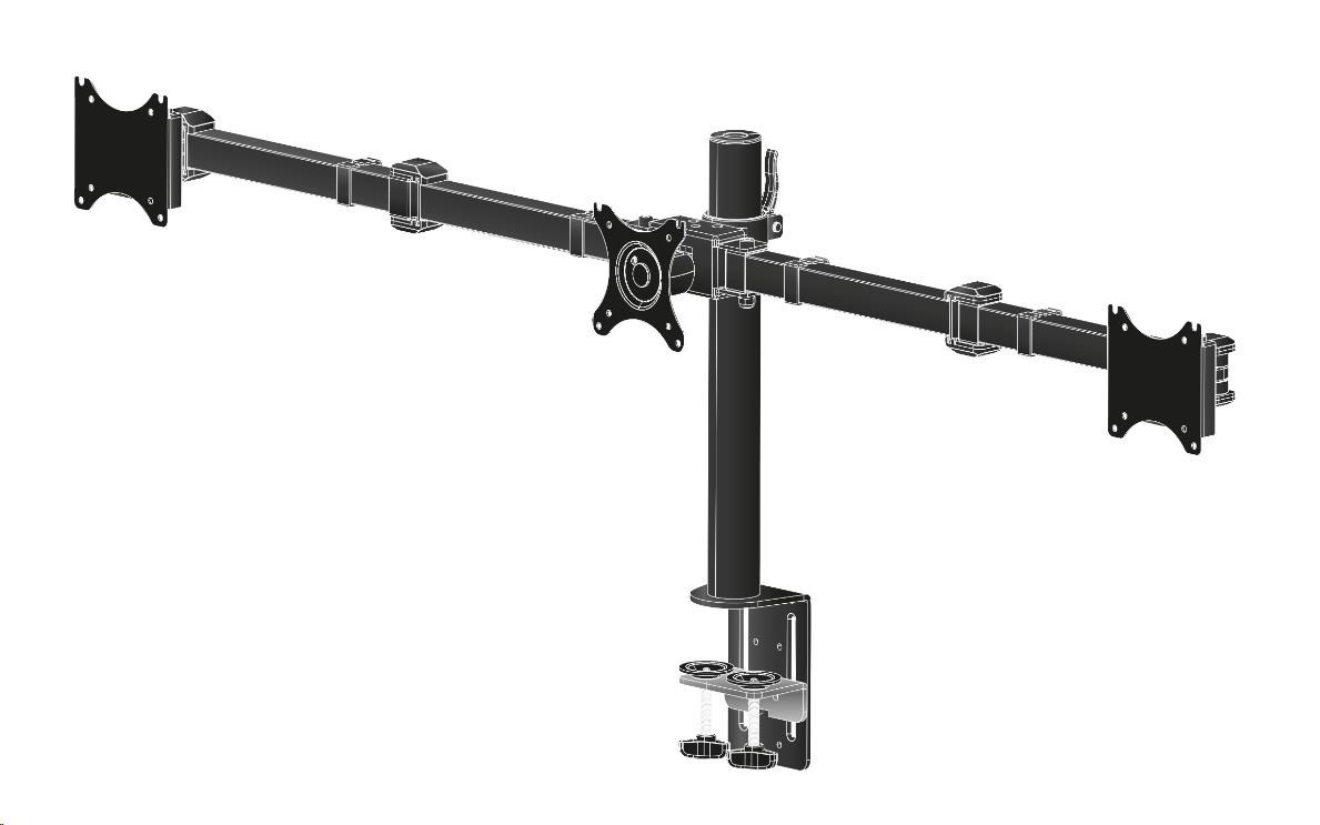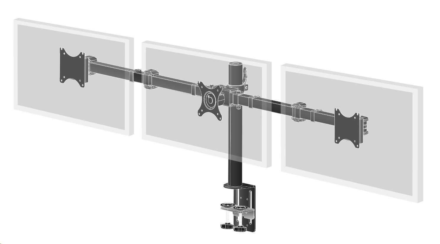 The iiyama DS1003C-B1 is a desk mount for three flat screens up to 27”. Thanks to the arm you can create a triple monitor setup even if your desk space is very limited, and the cable management system helps to keep your workplace tidy. Broad adjustment capabilities, including tilt, height and rotation, the arm offers, allow you to easily adjust the position of the screens to your preferences assuring comfortable and healthy body posture..