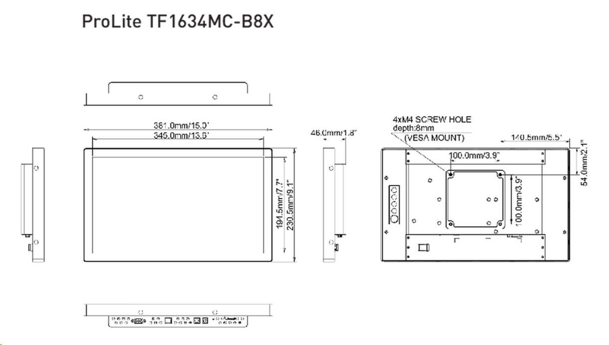 Popis iiyama ProLite TF1634MC-B8X, 39.6 cm (15,6''), Projected Capacitive, 10 TP, Full HD, black
