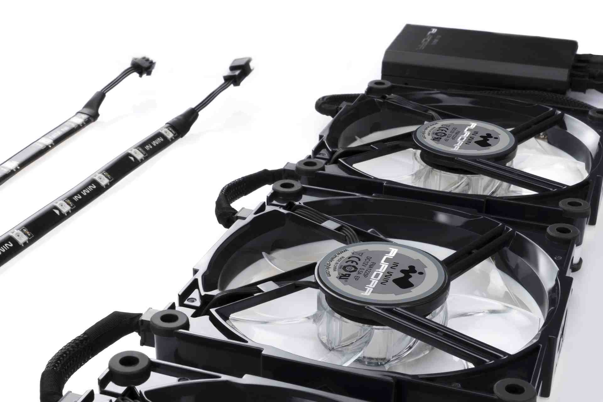Popis IN WIN Aurora Black/Red (3 fans + controller + 2 x led strip)