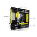 Oddělené pozice HDD a PSU zajišťují ideální proudění vzduchu skrz skříň ven zadními větracími otvory, aniž by se odvod teplého vzduchu brzdil o základní desky nebo grafické karty.