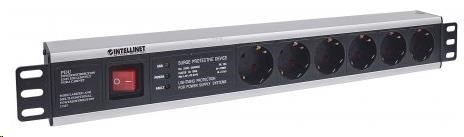Popis Intellinet 19" 1.5U Rackmount 6-Way Power Strip - German Type, rozvodný panel, 6x DE zásuvka, 3m kabel,přepěťová ochrana