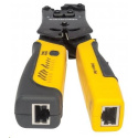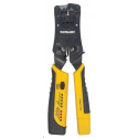 Univerzální modulární krimpovací nástroj na zástrčky a tester kabelů od společnosti Intellinet Network Solutions je vysoce kvalitní univerzální krimpovací nástroj, tester síťových kabelů, odizolovač vodičů a řezačka. Síťoví profesionálové mohou snadno ukončovat a testovat síťové kabely na spojitost vedení, otevřené konfigurace, zkraty a chybné zapojení. Tento krimpovací nástroj a tester kabelů, který je vynikajícím doplňkem každé sady síťového nářadí, dokáže rychle zkontrolovat zakončení předtím, než pracovníci IT nainstalují přizpůsobený kabel. Umožňuje také rychlou identifikaci a opravu problémů s připojením ve stávající instalaci. Profesionální modulární krimpovací nástroj vše v jednom s funkcemi řezání, odizolování a testování kabelů. Kompatibilní s konektory RJ45, RJ11, RJ12 a RJ22 Jediným nástrojem lze stříhat, odizolovávat, ukončovat a testovat kabely. Testuje propojovací kabely a instalovanou kabeláž Funkce ráčny Tříletá záruka.