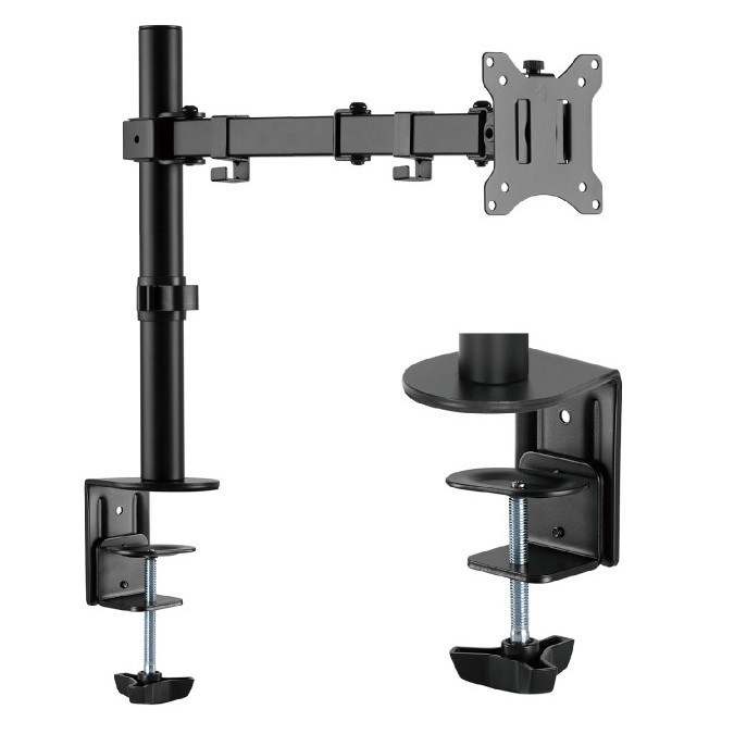 Stolní držák na monitory 17-32", otočný, sklopný, délkové i výškové nastavení, uchycení na okraj stolu nebo do prostoru, VESA standard, nosnost 8kg.Více