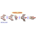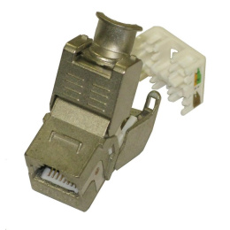 Keystone Cat6A, STP, samozařezávací se zaklapnutím, stříbrný Lze zařezat kabely s vodiči o průměru AWG26-22, průměr s izolací 0,4-0,6 mm..