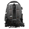 Batoh s celkem 48 kapsami pro snadnou organizaci Odnímatelný nástrojový panel s držadly a D-kroužkem pro zavěšení Kvalitní Letecký kabel silně zpevňuje rukojeť i robustní zip s uzamykatelnými oky (zámek není součástí dodávky) Vyrobeno z odolného vodě odolného balistického materiálu 1680d a tvarovaného pevného dna, které pomáhá chránit před živly Možnost zavěšení batohu pomocí těžkého kovového háčku pro snadný přístup a práci Dobře polstrované ramenní popruhy mají přezku na hrudi spolu s dolními popruhy, které se přizpůsobí dokonalému uchycení Nastavitelné výklopné přední pouzdro pro rychlé vyhledání nástroje, přední kapsa na zip střední velikosti vejde se například tablet i v obalu , zpevněná krytá přední kapsa na zip pro menší předměty Tvarovaná pevná přední horní kapsa pomáhá chránit předměty, jako jsou telefony, ochranné brýle a podobně Interiér v oranžové barvě pomáhá snadno najít nástroje, velký vnitřní prostor pro větší ruční nástroje