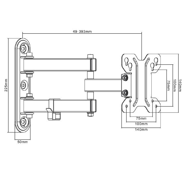 Držák na monitor nebo Tv 13-37", výsuvný 49-393mm, otočný +/-90°, sklopný +/-15°, VESA 75x75 a 100x100, nosnost 30kg.Více