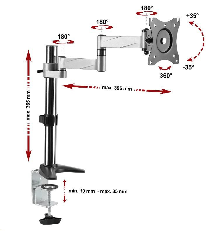 F70 je otočný, sklopný, výškově a délkově stavitelný držák monitoru 13-27" s funkcí PIVOT.Více