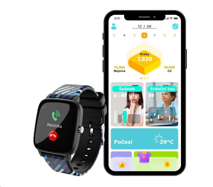 Prostředí hodinek a aplikace je kompletně v češtině, takže ovládání nebude pro dítě žádný problém. Hodinky lze přepnout do dalších jazyků a podporovat tak výuku angličtiny a dalších jazyků.