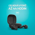 Na jedno nabití zvládnou sluchátka fungovat až 10 hodin, dalších 34 hodin je ukryto v pouzdru, celkem je tak k dispozici 44 hodin. Dobíjení probíhá přes USB-C kabel.