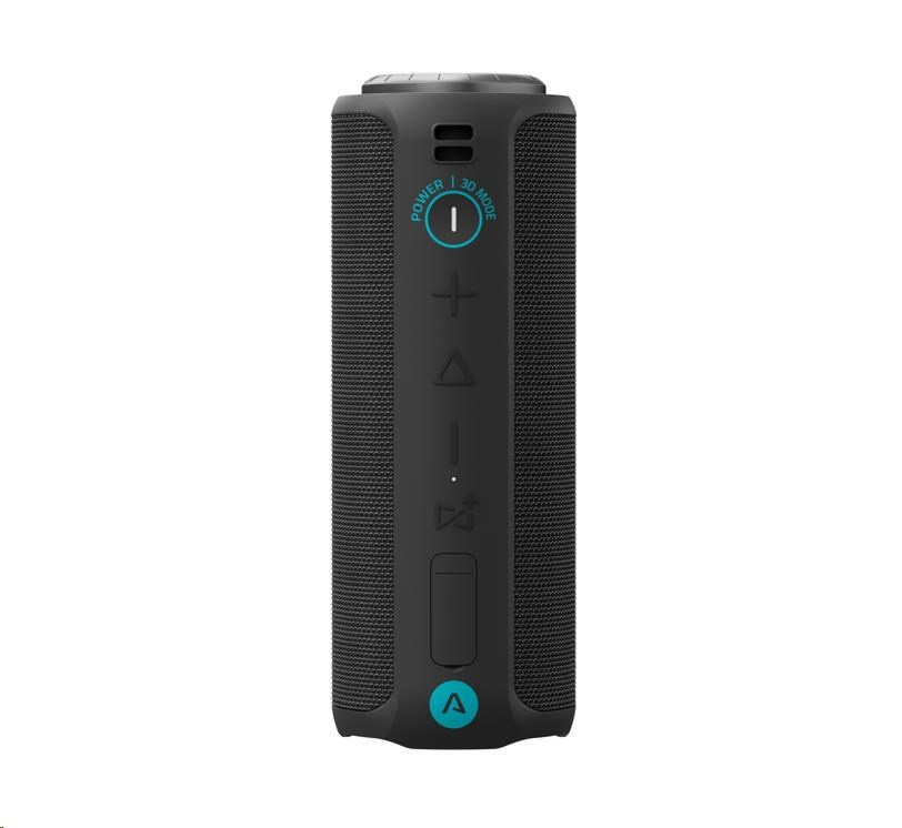 Reproduktor má užitečné poutko, za které jde zavěsit nebo odnést a s rozměry 225 × 88 × 88 mm ho snadno hodíš do báglu.