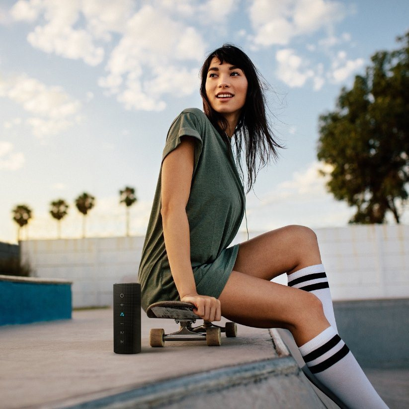 Jednoduché ovládání se nachází přímo na reproduktoru a USB-C konektorem ho nabiješ raz dva. Kromě Bluetooth můžeš pouštět písničky i přes microSD kartu, nebo využít AUX kabel.