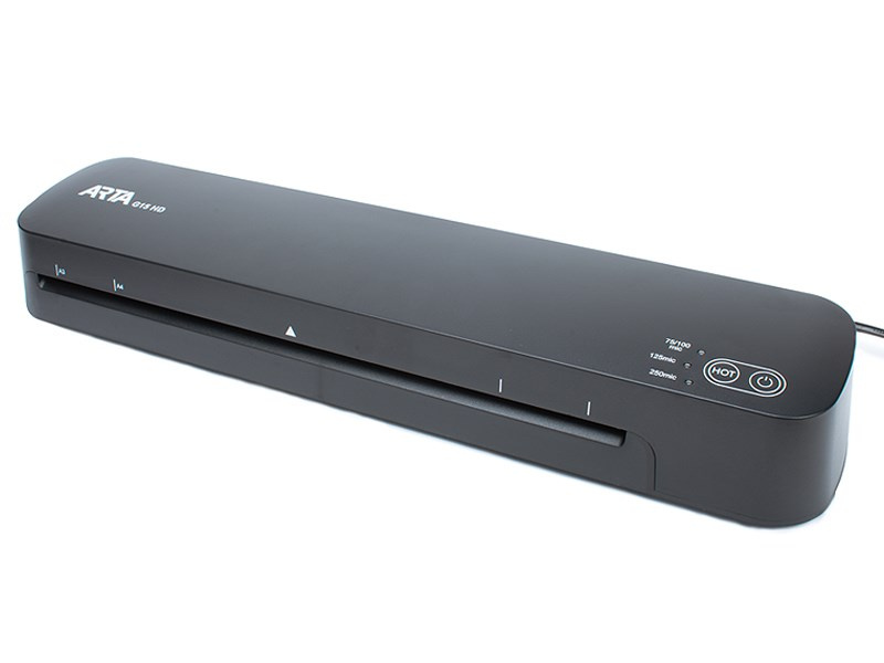 Laminátor dokumentů s možností volby tloušťky laminované fólie. Model ARTA G15 HD A3 umožňuje laminování dokumentů, které mají maximální šířku 330 mm (A3), s fóliemi o tloušťce 75 až 250 mikronů. Doba potřebná k ohřátí je pouze 60 sekund. Je snadno použitelný, kompaktní a vyniká přítomností inteligentní funkce automatického vypnutí po 30 minutách nečinnosti. Součástí je také možnosti uvolnění zaseknutých dokumentů..