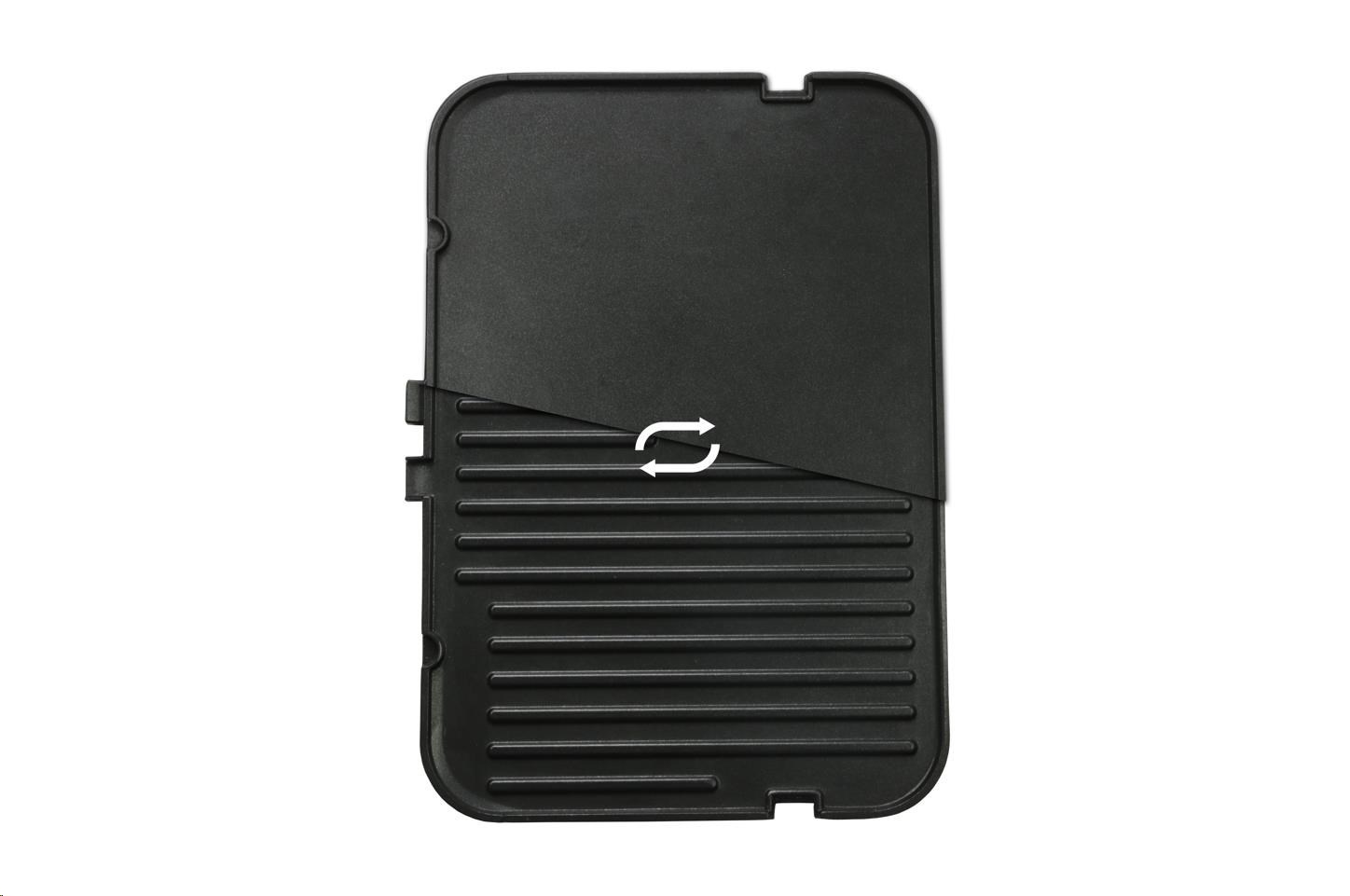 Oboustranné plotýnky nabízí klasickou žebrovanou plochu, ale i hladkou pro větší variabilitu pokrmů.