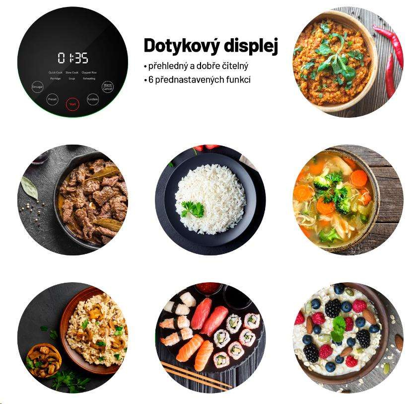 Rýže s až o 40 % nižším obsahem sacharidůLauben Low Sugar Rice Cooker je víceúčelový prémiový rýžovar s funkcí low sugar, při níž díky speciální technologii vaření dochází k separaci sacharidů. S tímto pomocníkem dovedete k dokonalosti všechny druhy rýže a díky 6 nastavitelným režimům rychle vytvoříte zdravá a chutná jídla i z dalších surovin. S rýžovarem Lauben připravíte luštěniny, polévku nebo třeba ovesnou kaši, aniž byste zapnuli sporák.