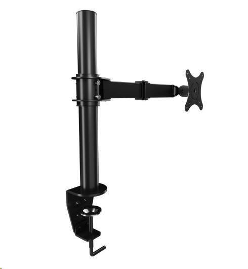 Kompletní specifikace Kvalitní stolní držák poctivé konstrukce Ergosolid NF11 Snadno polohovatelný stolní držák na monitory 10-30", VESA 75x75 a 100x100, otočný, sklopný, nastavení výšky, pivot, nosnost 10kg Nabízíme Vám nový stolní držák na monitory s inovovaným systémem pro nastavení výšky, ke kterému nebudete již potřebovat nářadí. Držák umožňuje nastavení polohy monitoru 3D - otáčení do stran, náklon, rotace, výška a vzdálenost. Uchycení je možné na okraj veškerých stolových desek o síle 20-100mm. Držák podporuje VESA 75x75 a 100x100, nosnost je 10kg. Barevné provedení černé. Záruka 3 roky. Poctivý držák na monitory s úhlopříčkou 10-30 Technické údaje: nosnost 10kg na monitory s úhlopříčkou 10" až 30" podpora VESA 75x75 a 100x100 snadné výškové polohování 200÷340mm nastavení vzdálenosti od nosníku až 435mm otáčení do stran +/- 360° náklon +85° až -15° rotace monitoru - nastavení obrazovky na šířku nebo na výšku systém vedení kabeláže instalace na okraj stolu na všechny stolové desky o průměru 20÷100mm poctivá pevná konstrukce s důrazem na detaily materiál ocel barevné provedení černé záruka 3 roky.