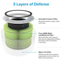 Druhou vrstvou je HEPA filtr H13. To odlišuje Levoit od konkurence, protože filtr HEPA H13 je mnohem kvalitnější a spolehlivější než běžně používané HEPA H11. Tu se odfiltrují jemné prachové částice, plíseň, bakterie, pyl, kouřové částice, roztoče a srst.