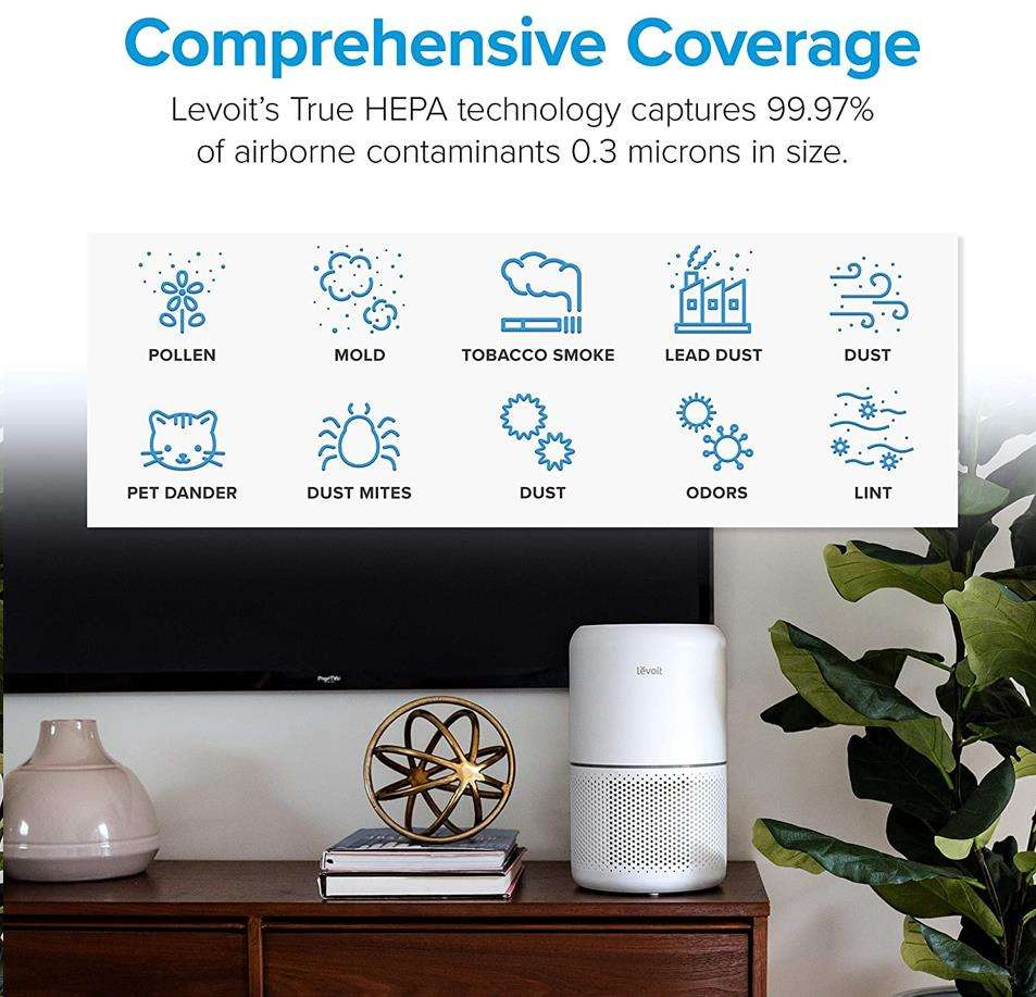 Druhou vrstvou je HEPA filtr H13. To odlišuje Levoit od konkurence, protože filtr HEPA H13 je mnohem kvalitnější a spolehlivější než běžně používané HEPA H11. Tu se odfiltrují jemné prachové částice, plíseň, bakterie, pyl, kouřové částice, roztoče a srst.