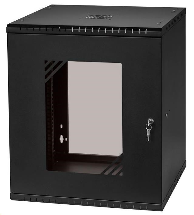 LEXI-Net 19" nástěnný rozvaděč Basic 12U 520x450, skleněné dveře, bez zad, rozložený, černý