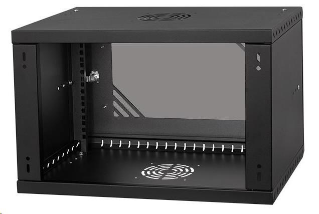 LEXI-Net 19" nástěnný rozvaděč Basic 6U 520x350, skleněné dveře, bez zad, rozložený, černý
