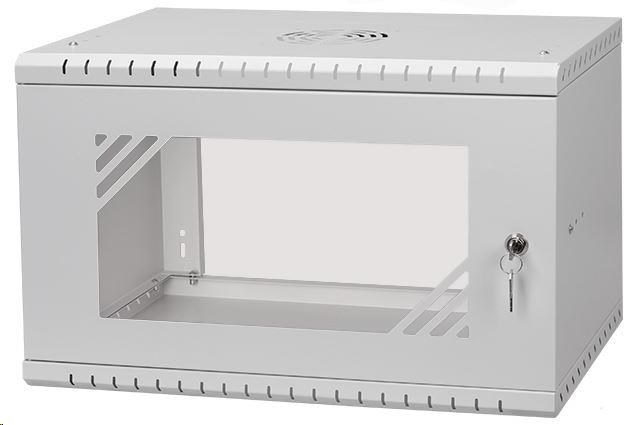 LEXI-Net 19" nástěnný rozvaděč Basic 6U 520x450, skleněné dveře, bez zad, rozložený, šedý