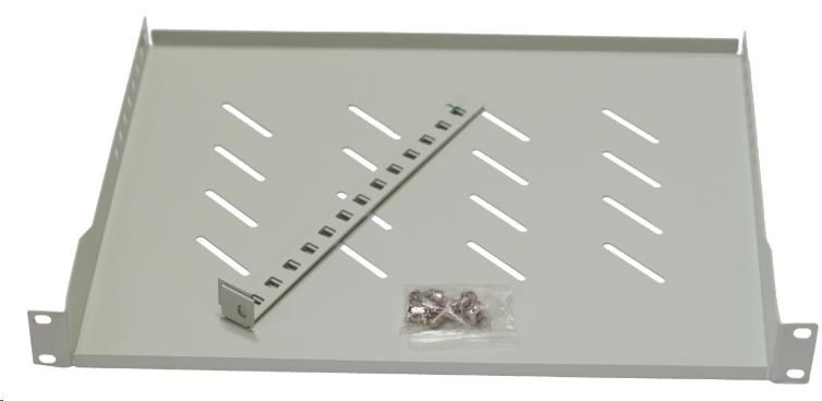 LEXI-Net 19" police s perforací 1U/350mm, nosnost 45kg, zadní nastavitelný úchyt, šedá