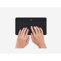 | Keys-To-Go with iOS Shortcut Keys (Left to Right) | - Home - App Switch - Search - Input language - Screen capture - Previous track / Rewind - Play/pause - Next track / Fast forward - Volume mute - Volume down - Volume up - Bluetooth connect - Keyboard battery check |