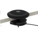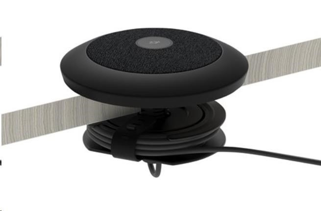 Naviňte přebývající kabeláž na kabelovou cívku, čímž dosáhnete úhledného vzhledu konferenčního stolu nejen při pohledu seshora, ale i zespoda. Připevněte kabelovou cívku přímo k držáku stolních mikrofonů nebo k jinému povrchu pomocí přiloženého upevňovacího materiálu.