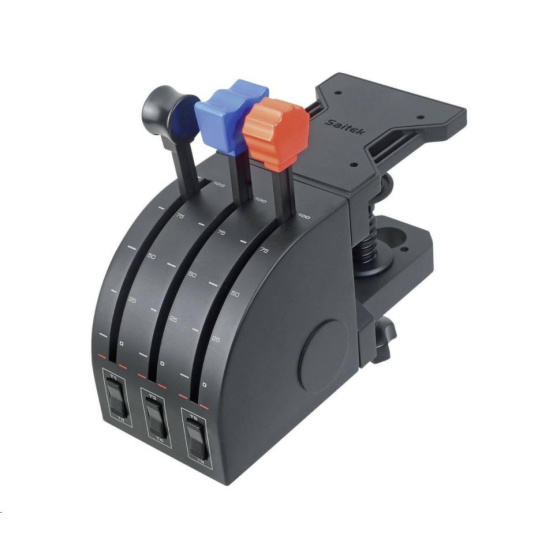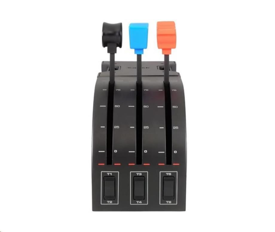 Akční nabídky na váš e-mailIf you like to fly multi-engine aircraft, most flight sim controllers leave you a couple throttles short. Flight Throttle Quadrant is the solution, providing three extra levers to control even more engines, flaps, gear, spoilers or any other programmable axes. In addition, three momentary, two-way toggle switches on the quadrant's base create a total of nine programmable commands. Add it to Logitech G Flight Yoke System for double the throttle axes.