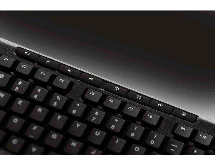Akční nabídky na váš e-mailLogitech® Wireless Keyboard K270. Reliable wireless—wherever you use your keyboard. The tiny Logitech Unifying receiver is small enough to stay in your laptop. Plus, you can easily add another compatible mouse or keyboard—without the hassle of multiple USB receivers. With Logitech Advanced 2.4 GHz wireless connectivity, you'll enjoy virtually no signal loss from up to 10 metres (30 feet) away.* You can go for two years without battery hassles.** Eight hot keys and plug-and-play setup that takes just seconds add to the simplicity. The familiar, full-size layout—including number pad—gives you all the right keys right where you'd expect them. And it's built to last with the high quality and reliability Logitech is known for, with a spill-resistant design*** and UV-coated keys for durability.