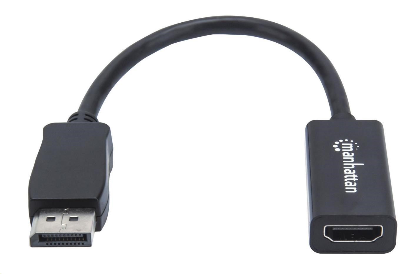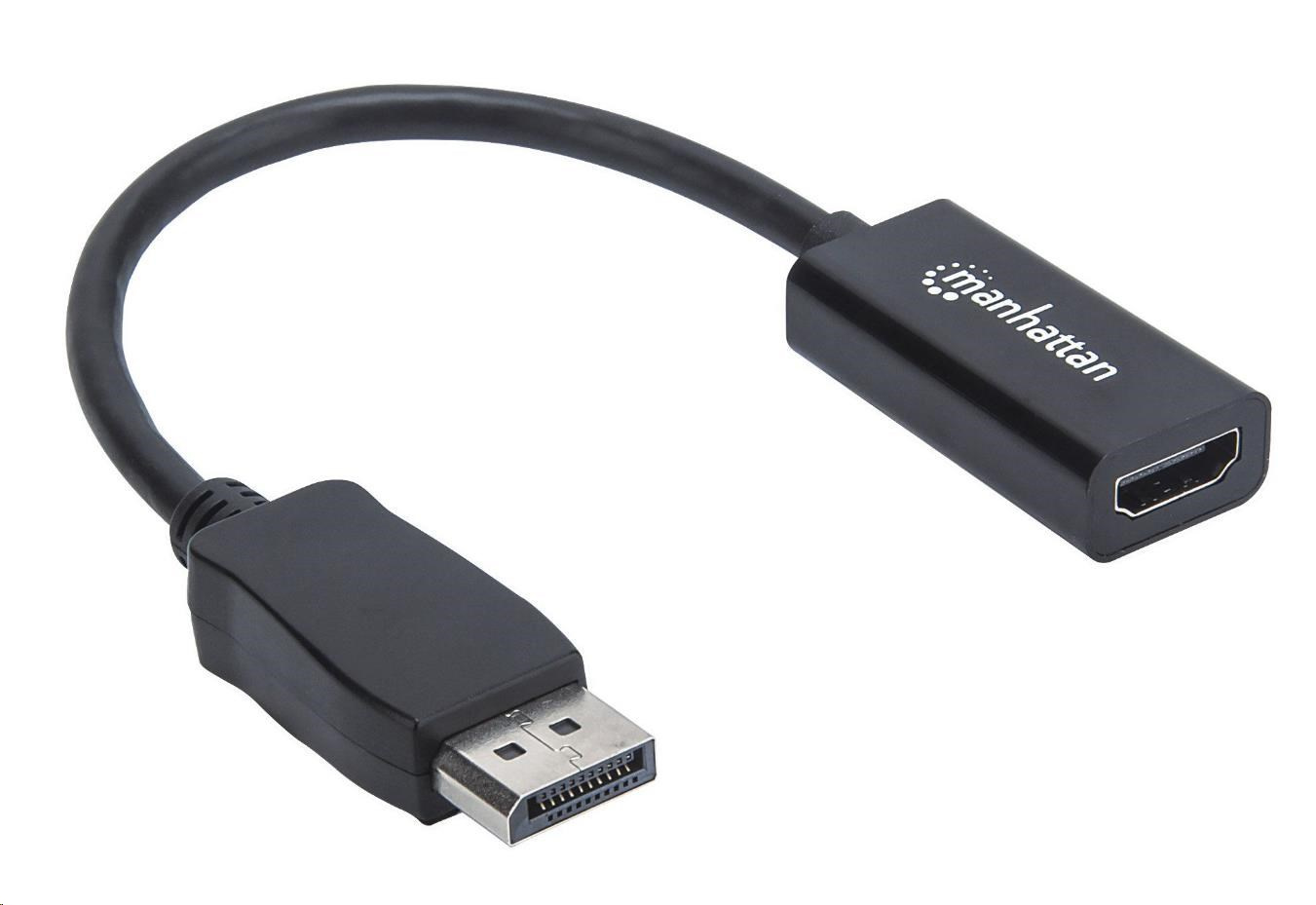 The Manhattan Passive DisplayPort to HDMI Adapter establishes a fast, simple and convenient link between newer DisplayPort-equipped sources and existing HDMI displays. This passive adapter requires DP++ (dual-mode) video/graphics cards to regenerate the signal and ensure the best connection to an HD display. The adapter is easy and quick to install and requires no complicated configuration or setup. The Manhattan Passive DisplayPort to HDMI Cable Adapter is sure to help users fully realize the investment, value and service life of HDMI displays. It offers a passive, compact and integrated solution that eliminates unnecessary cables, tangles and clutter to keep installations and workspaces orderly.