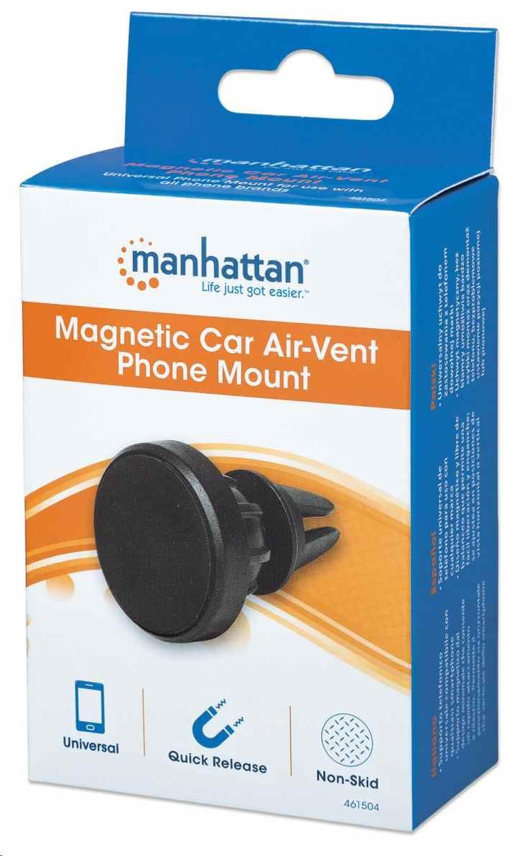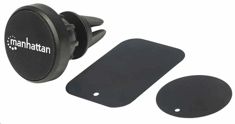 Akční nabídky na váš e-mailThe Manhattan Magnetic Car Air-Vent Phone Mount can be used with all phones and other devices for convenient, secure device mounting while you're on the go. The Phone Mount offers two different clip sizes so you can easily install it directly into most any vehicle's air vent. Included magnetic pads allow the device to be attached in portrait and landscape positions. The adjustable, locking ball-joint offers a 360° swivel so you can angle the base in any way you see fit, and with a built-in non-skid pad, your device remains secure from road vibrations and unexpected bumps.