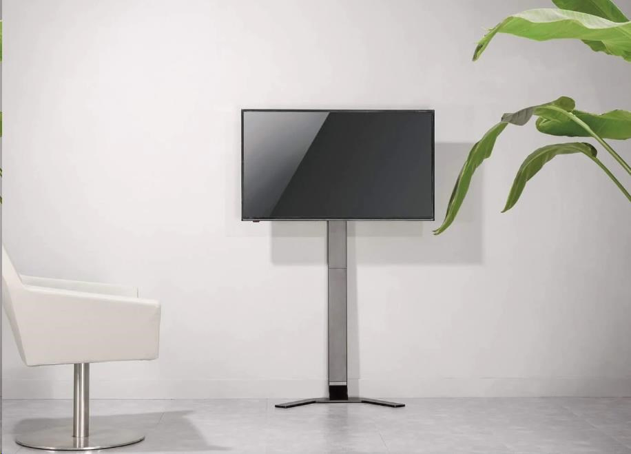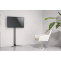 A high-quality aluminum-steel construction universally fits 32" to 70" TVs with VESA mount patterns up to 400x400 and is strength-tested to support loads up to 40 kg (88 lbs.). Optimize your view with tilt and height adjustment options. Its sleek design allows it to fit snugly on a wall, supported by a base that is angled so the column can fit above baseboards, allowing you to move the floor stand even closer to the wall.