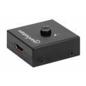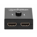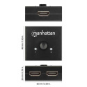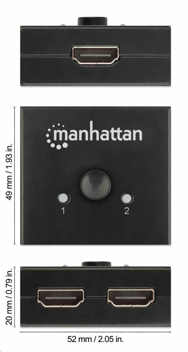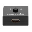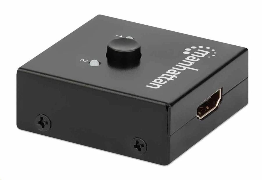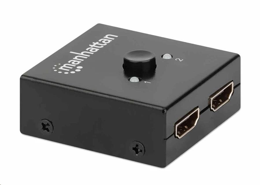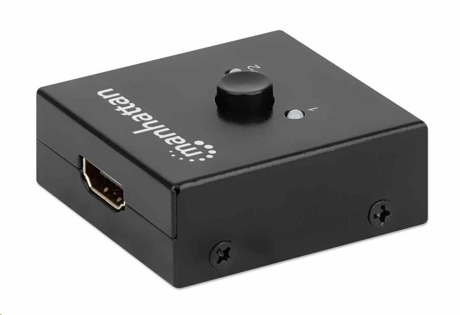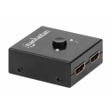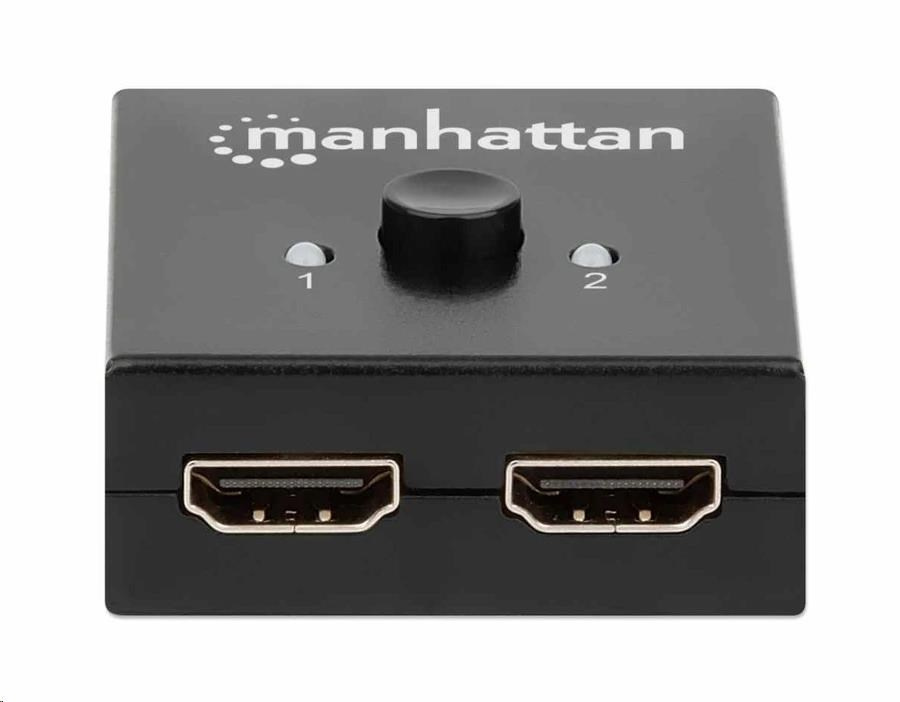 The Manhattan 4K Bi-Directional 2-Port HDMI Splitter Switch with built-in booster makes it possible to share a 4K HDMI signal from a single UHD source on one of two UHD displays or to connect two UHD sources and switch between them on one UHD display.
