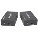 | Connections | One HDMI female, 19-pin (transmitter/receiver) One RJ45 female (transmitter/receiver) One 5 VDC power female, OD 5.5 mm / ID 2.1 mm (transmitter/receiver) Two 3.5 mm IR female (transmitter/receiver) |