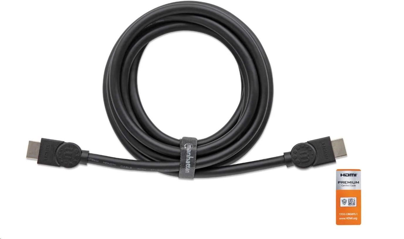 As the standard digital connection, HDMI delivers the highest-quality audio and video signal over a single cable. With a tangle-resistant design, gold-plated contacts, the Manhattan Premium High Speed HDMI Cable with Ethernet is carefully constructed to meet the evolving needs of the ultra-high-definition (UHD) marketplace. Offering the highest resolution possible at 4K x 2K and a refresh rate of 60 Hz, the cable also features a bandwidth of 18 Gbps for a perfect media viewing experience and an Audio Return Channel for a convenient, superb audio connection. This high-quality cable provides UHD video and multichannel, digital audio with increased performance characteristics and greater accuracy. Expanded features include Internet connectivity with its HDMI Ethernet Channel, which provides access to the Web for a home entertainment device using a single HDMI connection.