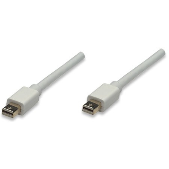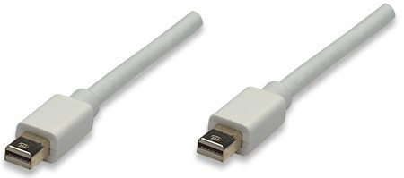 Manhattan Mini DisplayPort cables deliver both high-definition digital audio and video signals between desktop or notebook computers and an output device. The 20-pin connector is small and compact but offers 14.8 Gbps bandwidth, Deep Color and 24-bit, 8-channel uncompressed audio capability. It's ideal for use with DisplayPort-equipped computers, flat-panel displays, slim-profile devices and many consumer electronics including Blu-ray players and game consoles. Full foil and braided shielding, molded boots with strain relief, protective PVC jackets and gold-plated connections ensure that Manhattan DisplayPort Cables provide maximum conductivity and clear, crisp signal transmissions with reduced EMI interference and distortion.